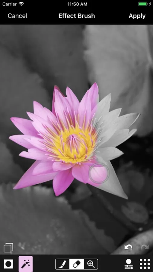 Choose from 24 effects including high quality black & white, Orton, film grain, halftone, and various color tone filters.