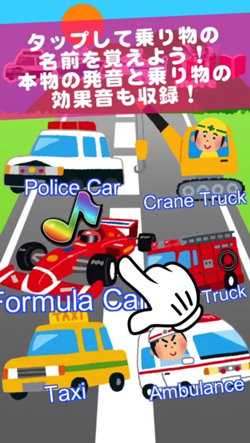 Police Car, Crane Truck, Formula Car, Fire Truck, Taxi, Ambulance