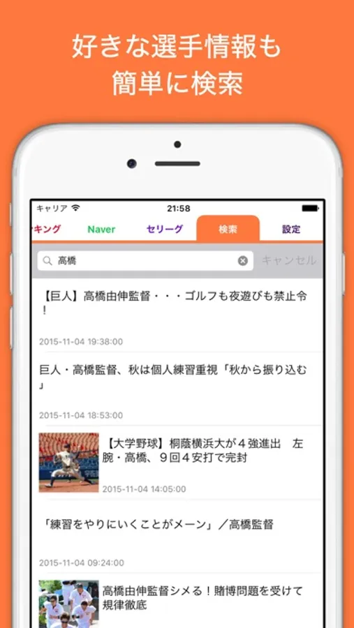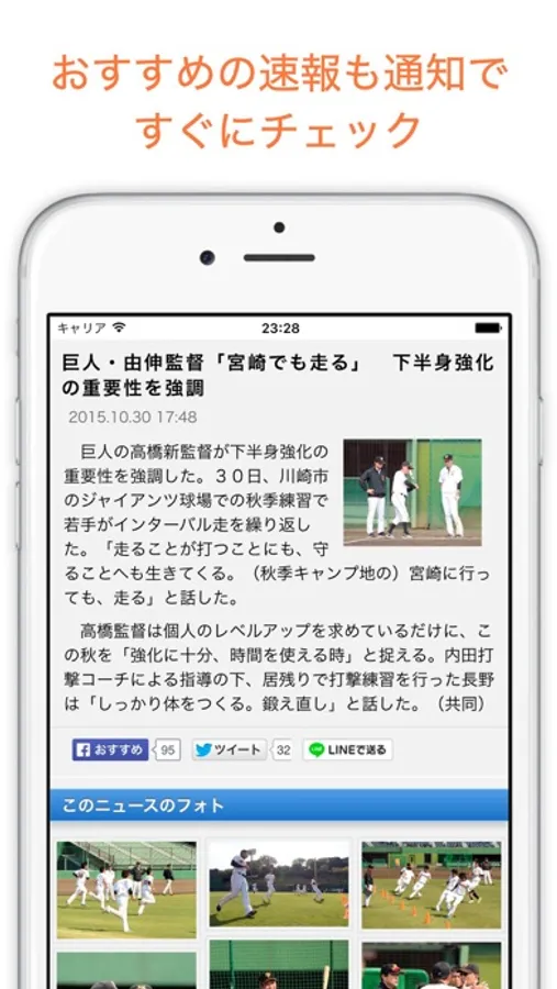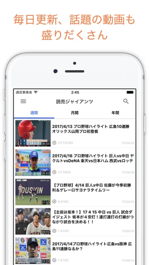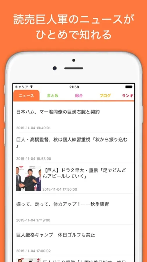 - 下方向へのスワイプ動作で巨人の最新情報が更新できます。