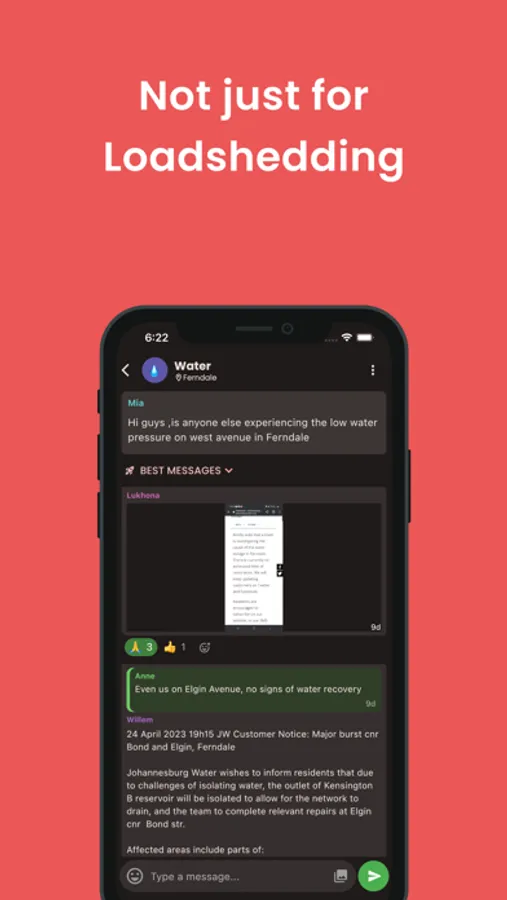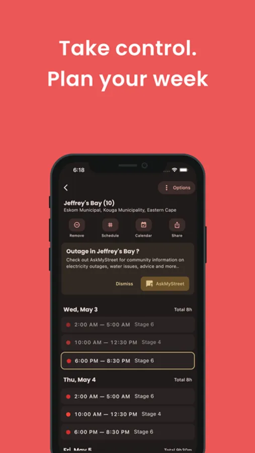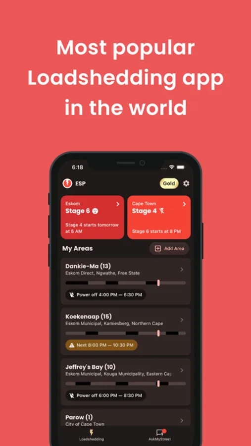 EskomSePush will let you know what's happening in your area. Use AskMyStreet to update and support your community