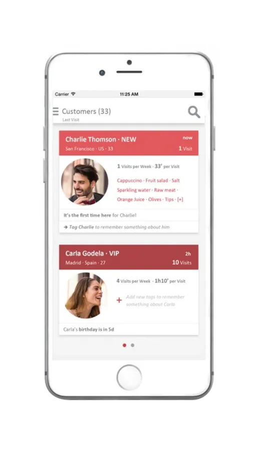 Cheerfy shares useful customer data — name, interests, birthday, number of visits, last visit, location — so you can use that knowledge to create more personalized experiences on the spot. You can also take notes on the go by tagging customer's preferences by voice or with a few clicks. See if today is someone's birthday. Or know if a new customer prefers coffee or tea.