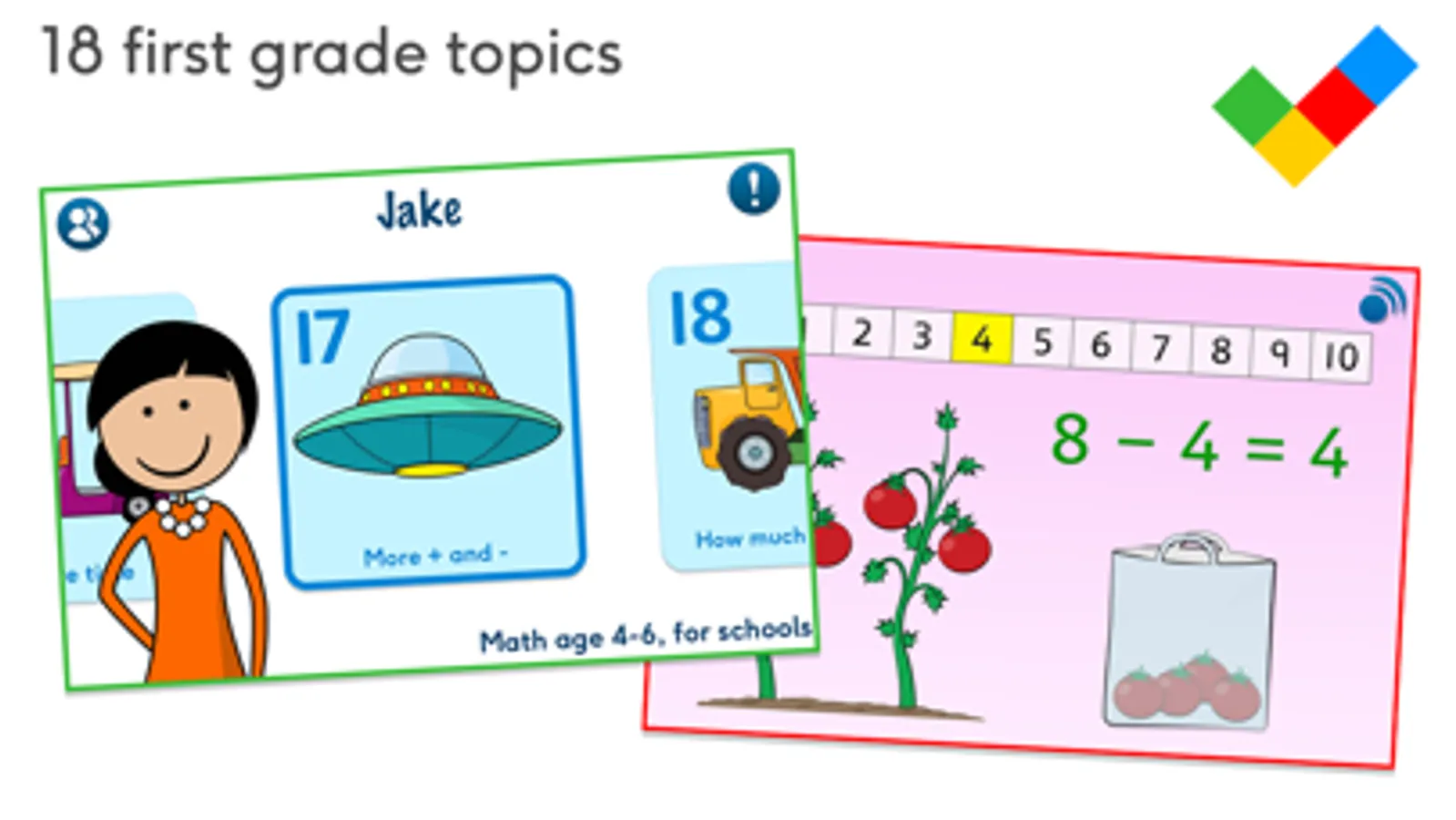 ‘Math age 4-6, for schools’, is the second app in our math series for schools, designed to give every child a great start in math. It follows on from our successful ‘Math age 3-5, for schools’ app, which is already popular in schools worldwide.