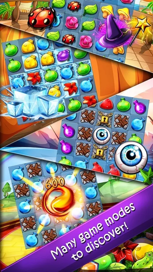 Match magical ingredients to solve over 100 levels in this enchanting and addictive puzzle adventure!