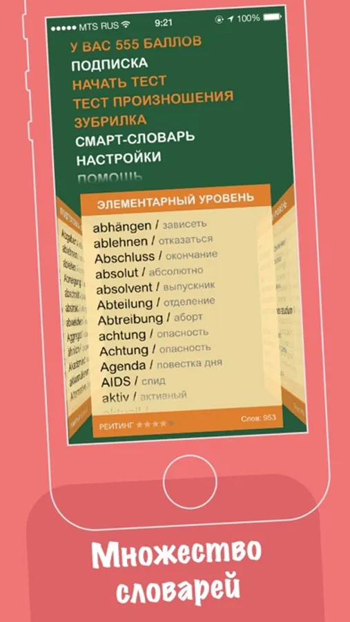Проходи тесты, скачивай новые словари, набирай баллы!