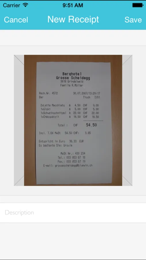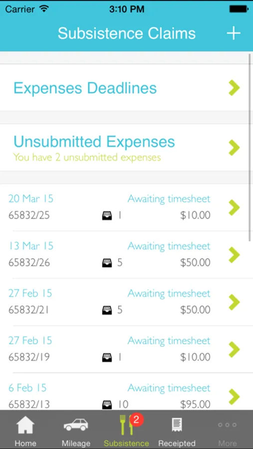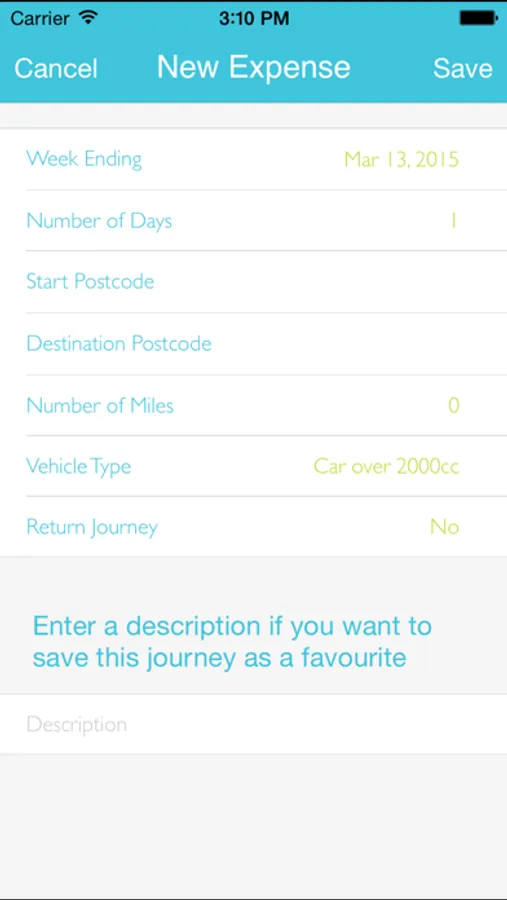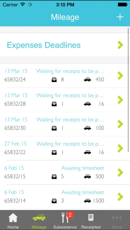 Enter mileage, receipted & other expenses quickly & use your camera to take a picture of the corresponding receipt & upload it (or use the camera roll).