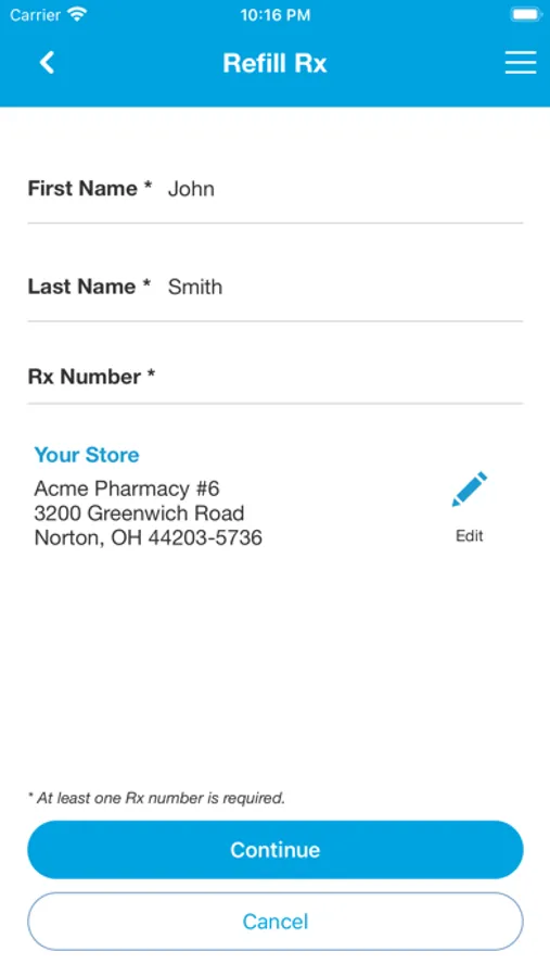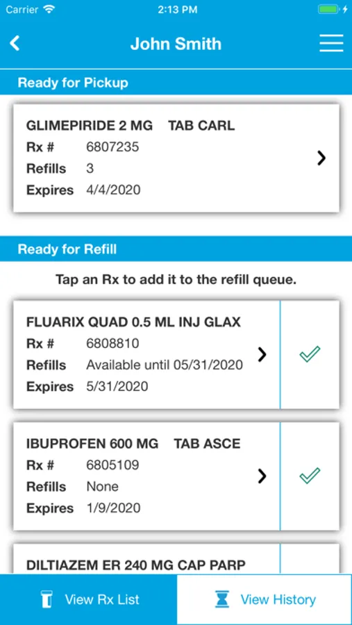 • Up to 10 prescription refills via barcode scan or Rx number entry