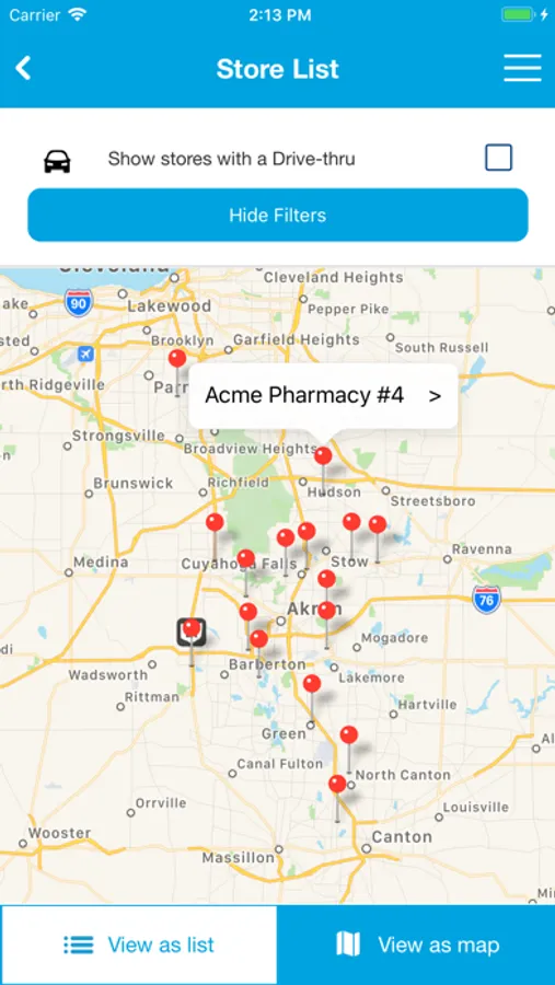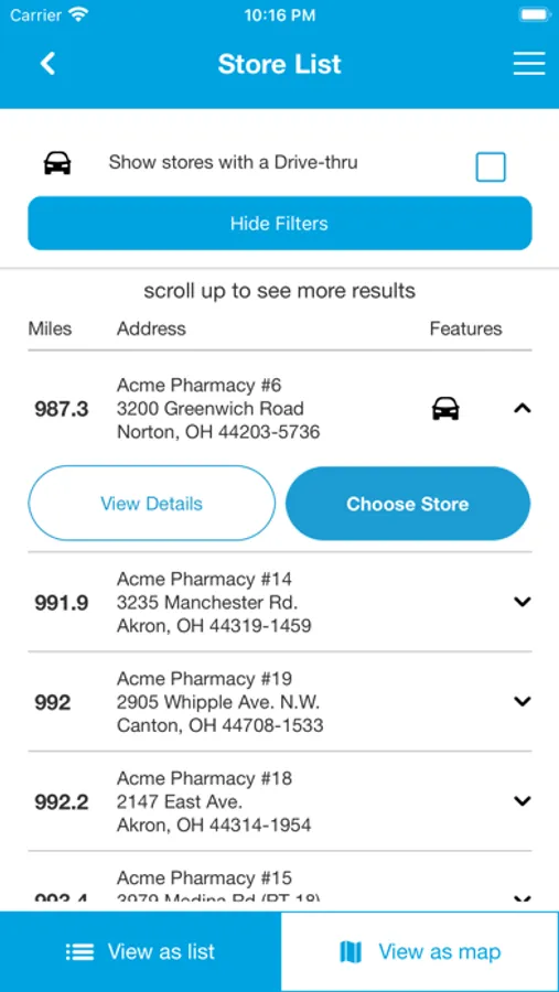 • Locate the closest Acme Pharmacy location via GPS or Zip Code search