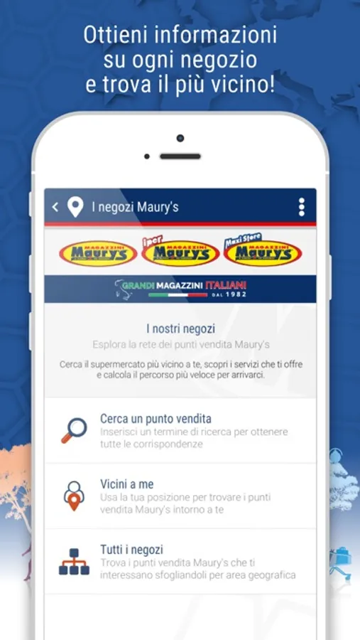 La nuova App del gruppo Maury’s offre un rapido accesso al mondo Maury’s, offrendo funzioni ed informazioni utili a scoprire il punto vendita più vicino a te, accedere alle promozioni in corso e ai contenuti di approfondimento su argomenti che riguardano la cura della persona e della casa.