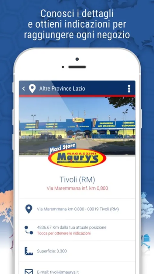 - scoprire i punti vendita più vicini alla tua posizione e visualizzare il percorso più rapido per raggiungerli;