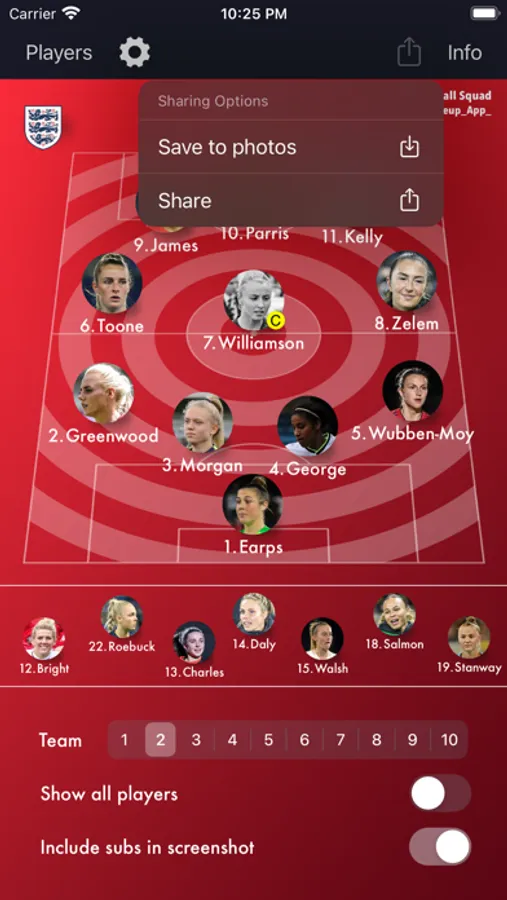 - When your squad is complete, tap the share button and choose where to save/share the image.