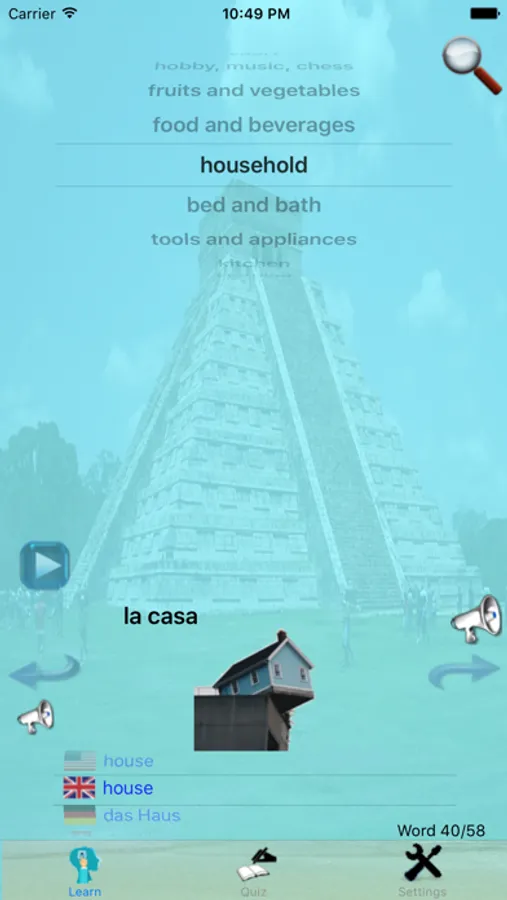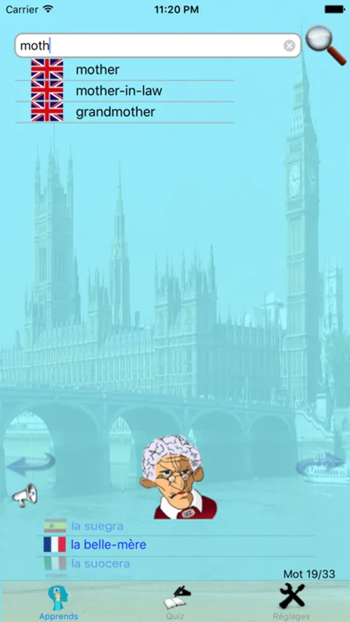 The iLanguage app will help you to improve your vocabulary by using the language flashcards. Its key features are: