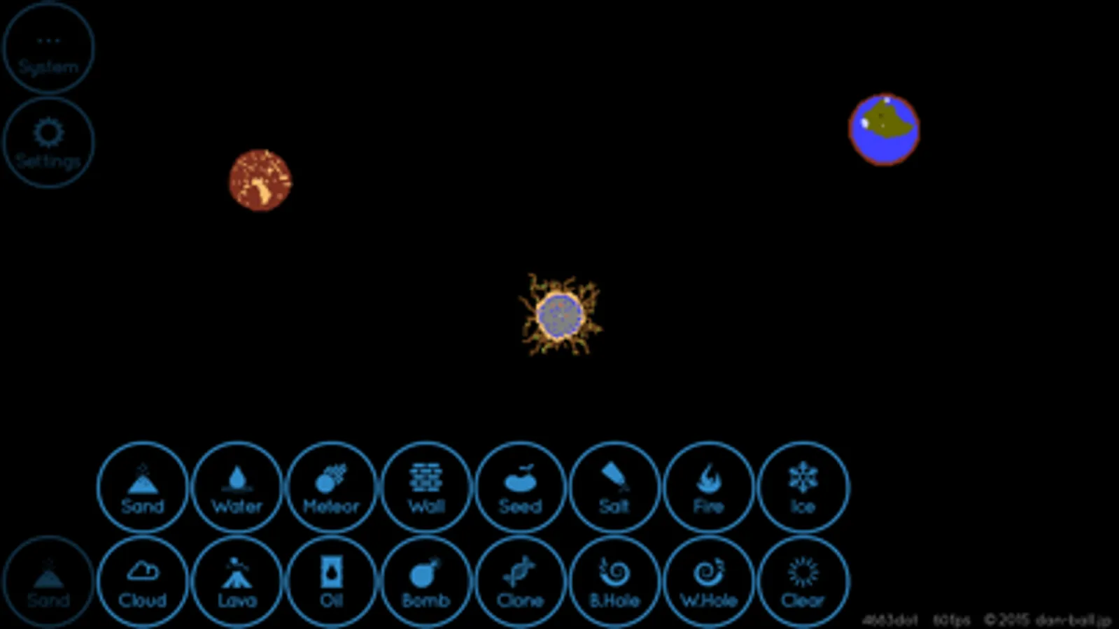 A simulation game that creates the Earth using various dots on the field of gravity.