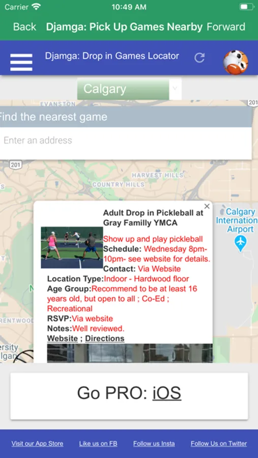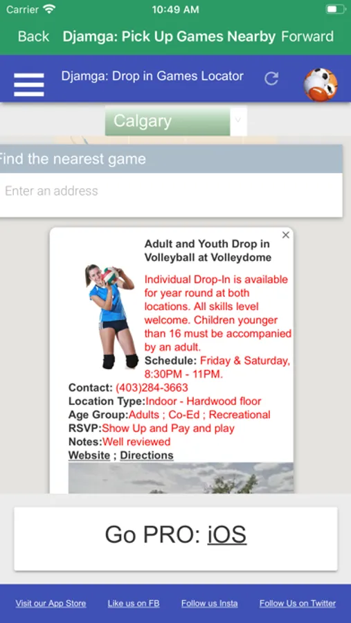 In addition to the pick up or drop in games locator tool, Djamga also provide: