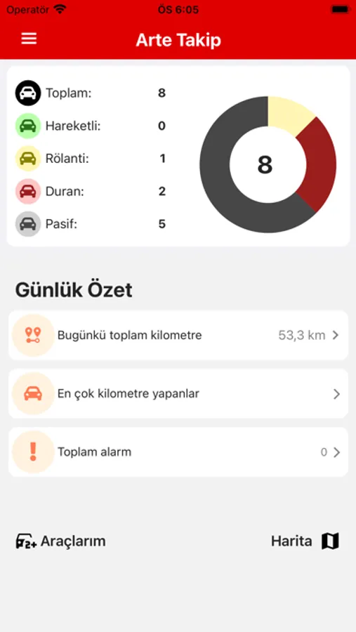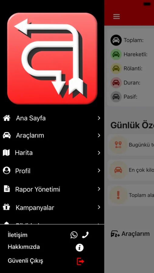 Araçlardan ana raporların alınabilmesi (Aktivite Özet , Aktivite Detay, Yakıt Seviye, Aracın müşirden alınan km'sine göre akıllı yakıt grafiği , Yakıt kullanımına göre akıllı yakıt grafiği),