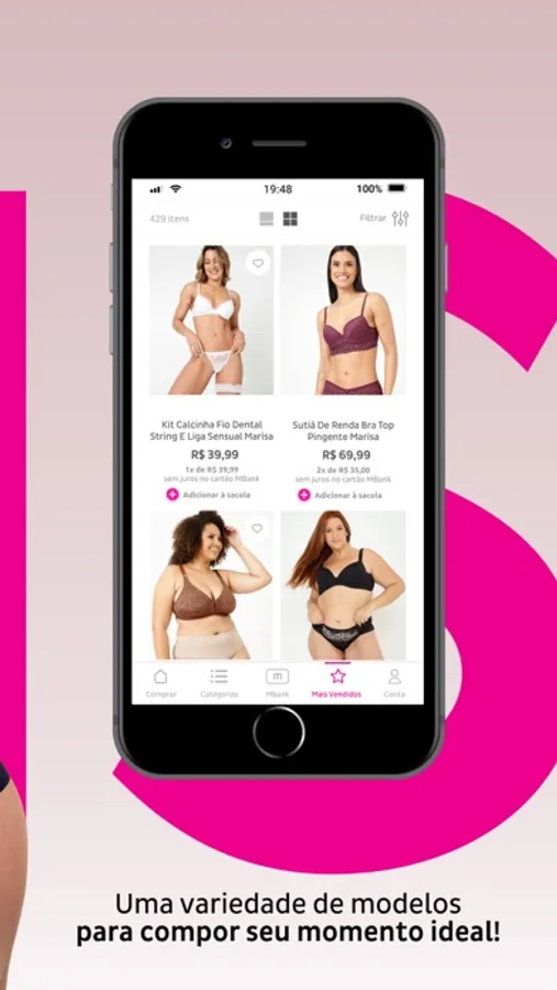 Não deixe de dar uma passadinha nas categorias de calçados, acessórios, lingerie e pijama para ter um guarda-roupas completo e estar sempre bonita e confortável.