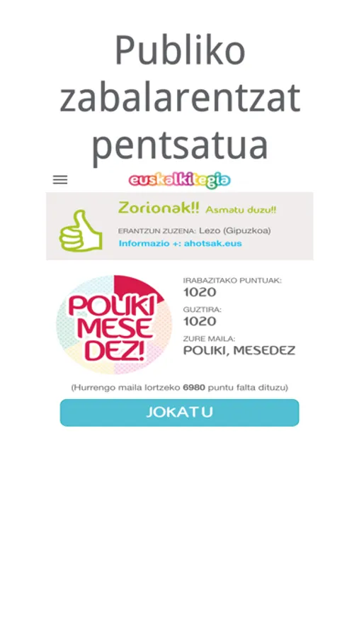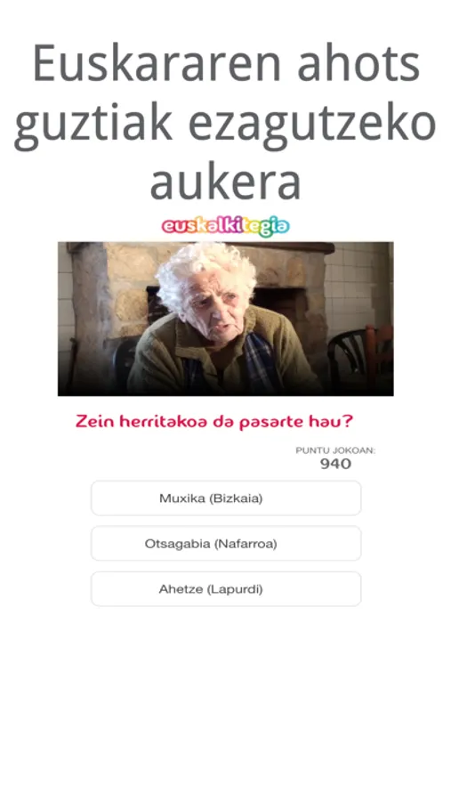 Eman play bideoari, findu zure belarria, eta erantzun hiztunak zer herritako euskara darabilen. Ahalik eta galderarik gehien asmatzea da erronka. Eta, asmatu ahala, puntuak lortzea eta mailaz igotzea. Proba bakoitzak puntu-kopuru ezberdina balioko du, eta zenbat eta zailagoa izan asmatzea, orduan eta puntu gehiago jasoko dituzu.