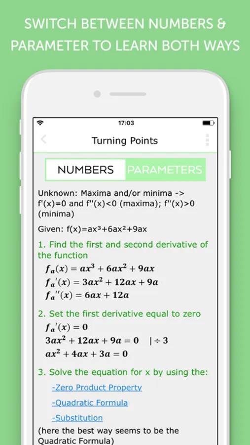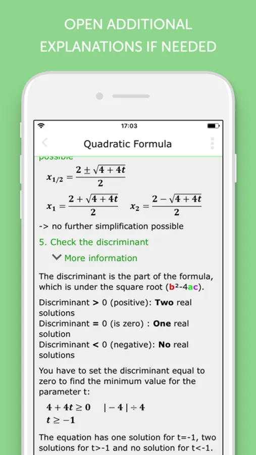 • After you understood the theory, you are able to solve math problems, which are available directly in the app.