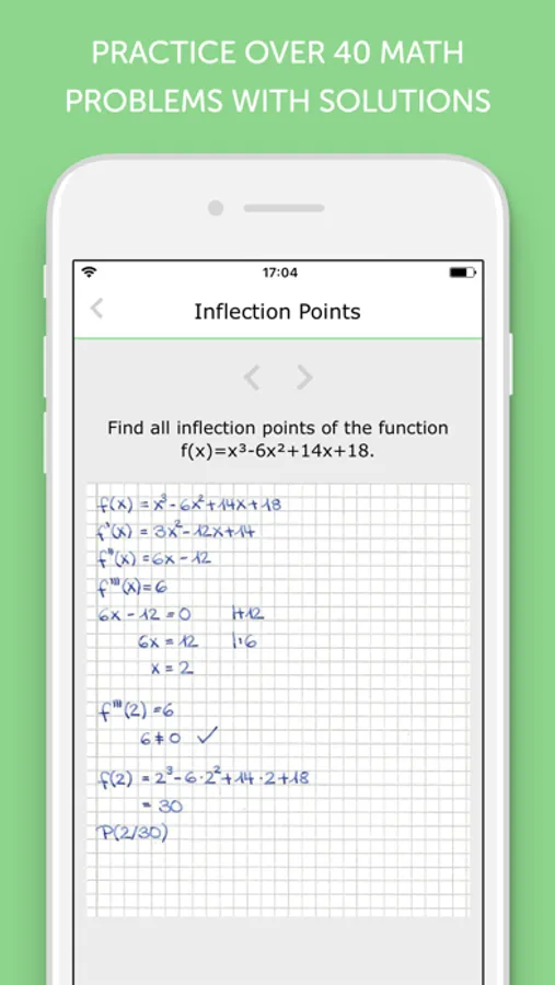 • Handwritten solutions are available to control yourself. It also teaches you how to solve and write down the math problems what avoids you giving away points in the exams.