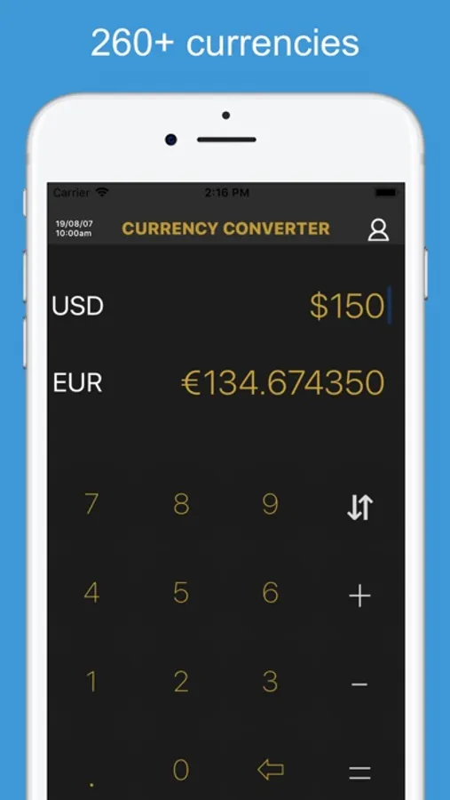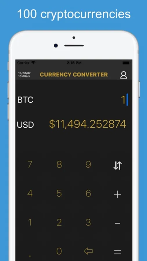 Currency Converter supports over 260 currencies including 100 cryptocurrencies (Bitcoin, Ethereum, Ripple, Bitcoin Cash, Litecoin, EOS, Monero, Cardano, Stellar, TRON,...).