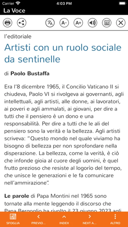 La Voce è il settimanale delle diocesi di Perugia - Città della Pieve, Assisi - Nocera Umbra - Gualdo Tadino, Città di Castello, Gubbio, Orvieto - Todi, Terni - Narni - Amelia. In edicola dal 1953 è sul web dal 1994. Nel 1984 si rinnova divenendo "Settimanale regionale dell'Umbria". Questa app permette di sfogliare e leggere in modo semplice La Voce, di collegarsi rapidamente ai link citati negli articoli e alle foto gallery e video che arricchiscono l'edizione cartacea. L'app offre: accesso al numero corrente e all'archivio con ricerca testuale; condivisione sui social network; lettura offline (basta scaricare la copia sul proprio device); lettura vocale.