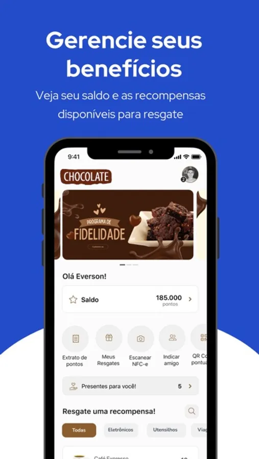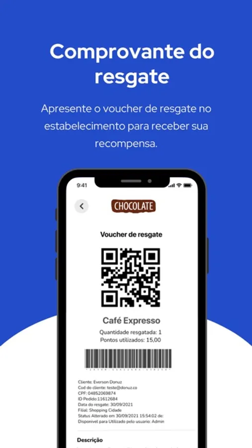 5. Troque seus pontos por prêmios utilizando o aplicativo e mostre o voucher de resgate no estabelecimento para receber o prêmio.