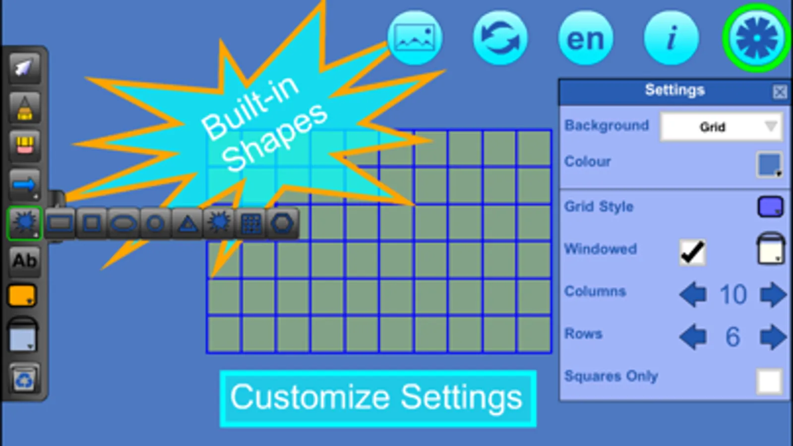•Include drawing objects: arrows, lines, number lines, rulers, hops, dots, rectangles, squares, ovals, circles, triangles, starbursts, grids and polygons