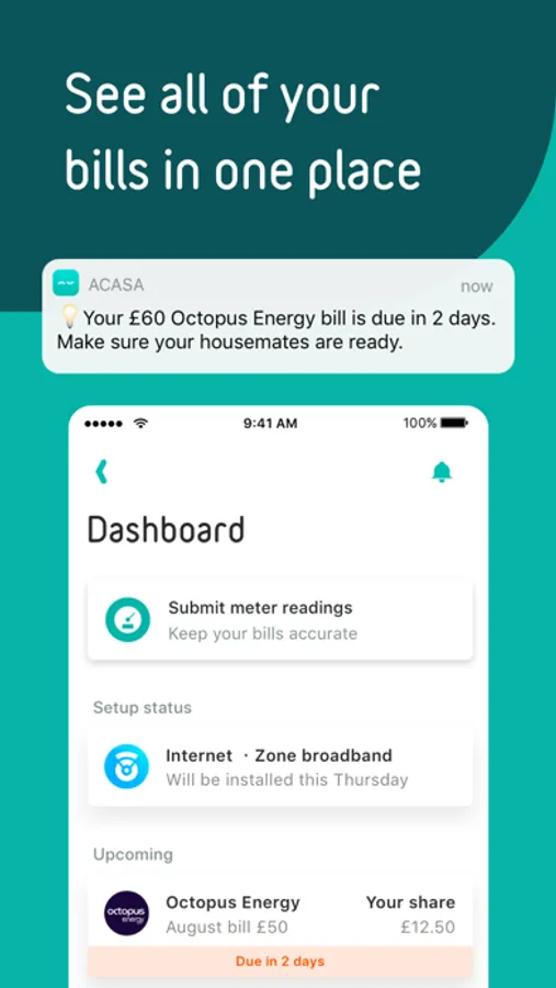 acasa helps you set up and manage your bills, then split the cost between housemates. It’s the stress-free way to run your home.