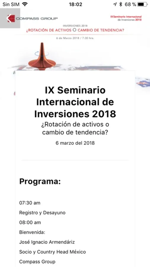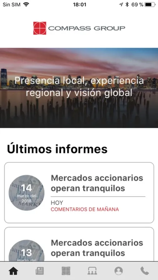 La aplicación de Compass Group permite a sus clientes acceder de forma rápida y eficaz a los distintos informes de mercado (comentarios de la mañana, informes diarios y mensuales), realizar un seguimiento mensual de los fondos mutuos y de inversión que ofrece Compass Group y mantenerse informado de las actividades organizadas por la