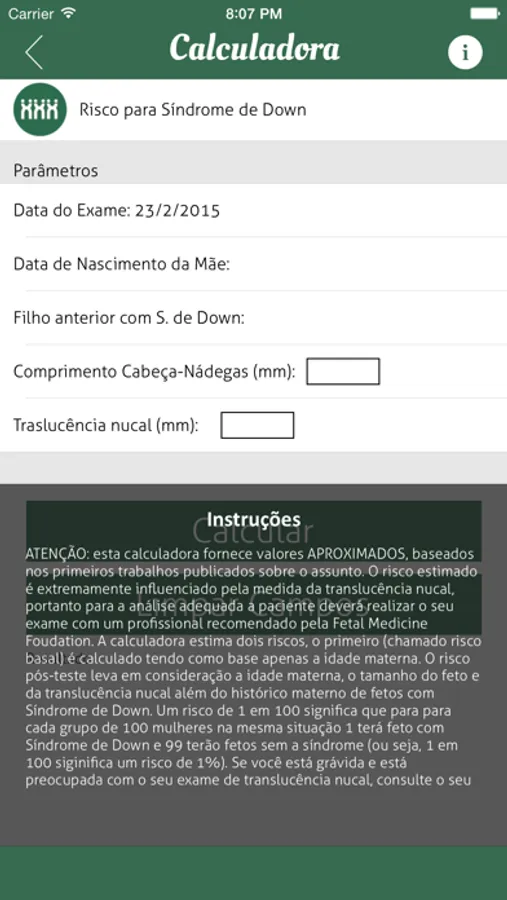 FatalCalc contem um série de cálculos voltados a area de Obstetrícia.