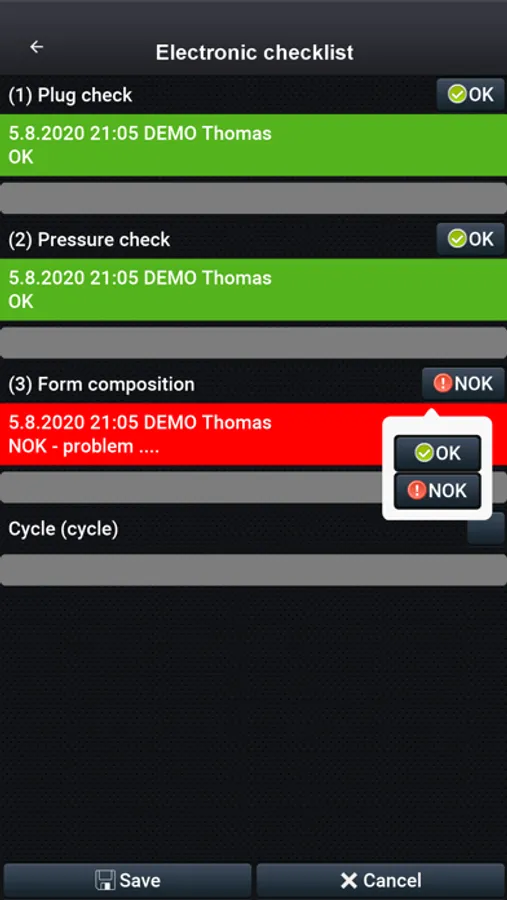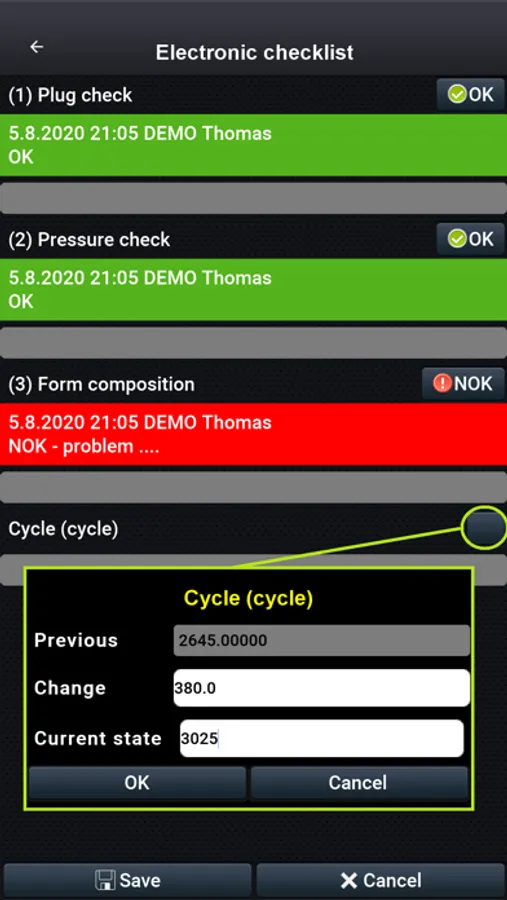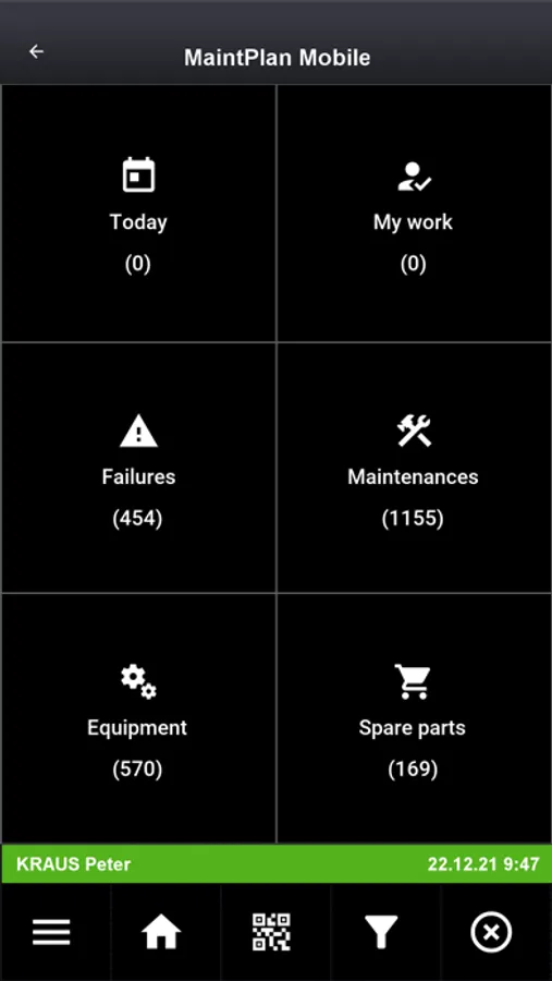 • Some functions (maintenance planing, settings, synchronization with the server ...) are not available in this demo version, because they requires connection to the services of the main app.
