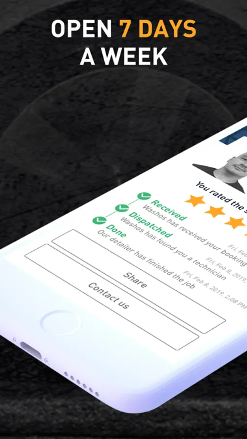 Manage your bookings, receive updates and reschedule easily through the app. Have a favorite detailer? We make it easy to request him/her again!