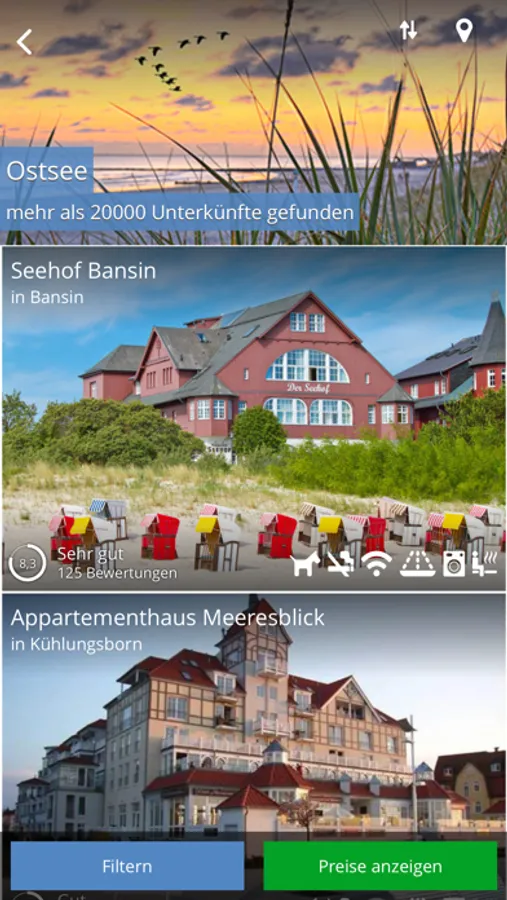 Ihre Suche können Sie ganz einfach eingrenzen, indem Sie die Ergebnisse nach Unterkunftsart, Region, Klassifizierung oder Ausstattung filtern. Dabei kann Ihre Suche jederzeit angepasst und aktualisiert werden.