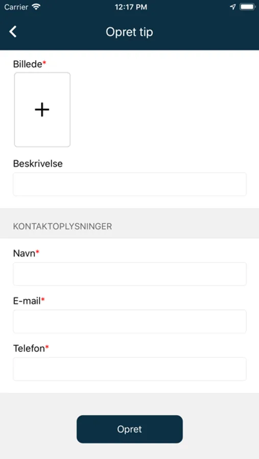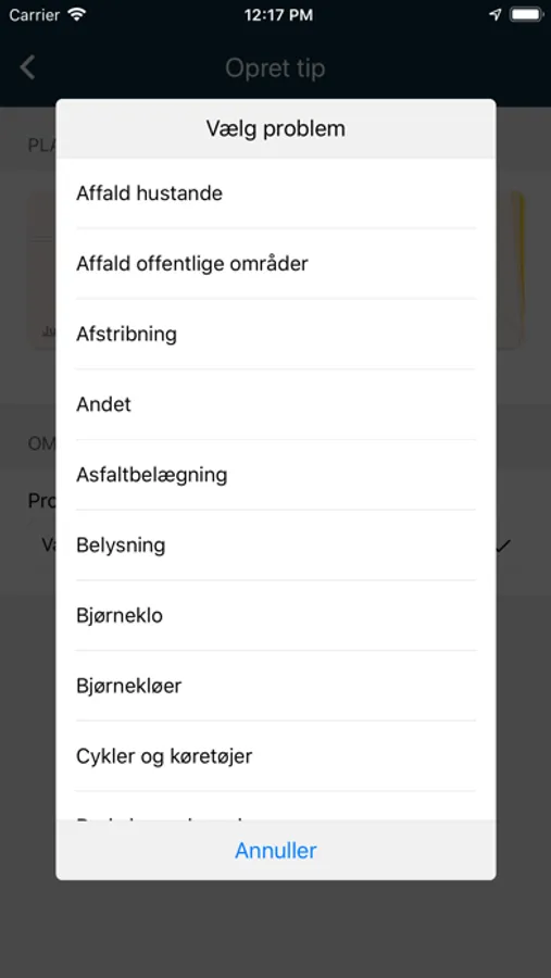 • Beskriv eventuelt problemet i tekstfeltet og tilføj billeder via kameraikonet, hvis det ønskes.