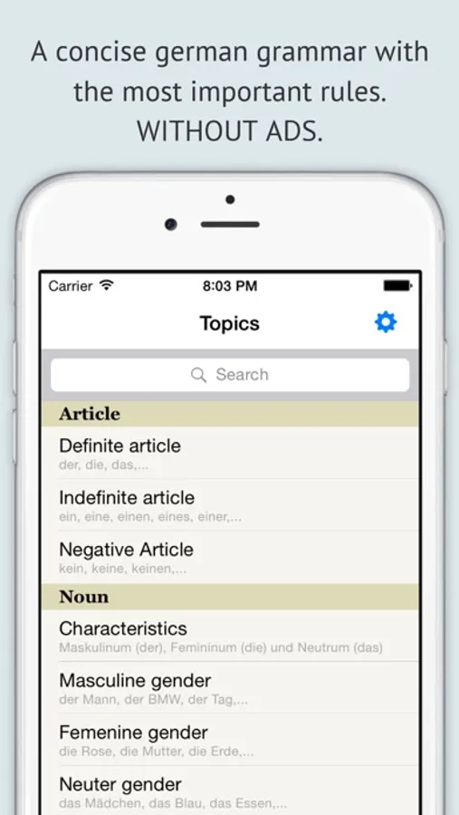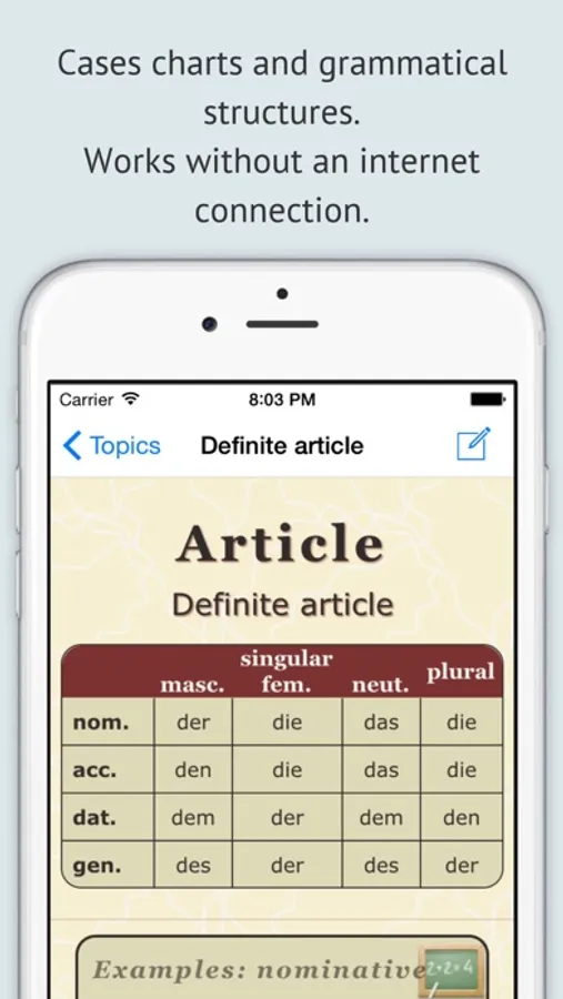 A concise german grammar with the most important rules, cases charts and grammatical structures. It is easy to use, with authentic examples and visually appealing tables.