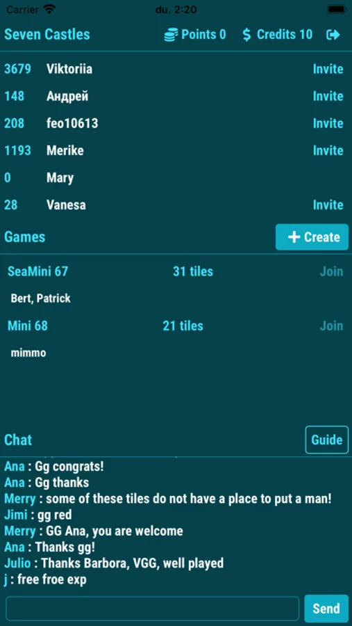 "Seven castles" is a real-time, multiplayer board game in which you build castles, roads or cloisters by placing tiles on the board. You get points every time you complete a castle, road or cloister which you have occupied by placing your follower on it.