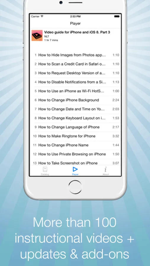 This is a complete tutorial video guide for iPhone, iPad and iOS 8 users. This app is a collection of helpful tips and tricks to make your iPhone and iOS 8 easier to use. Our videos are understandable and very straight forward.