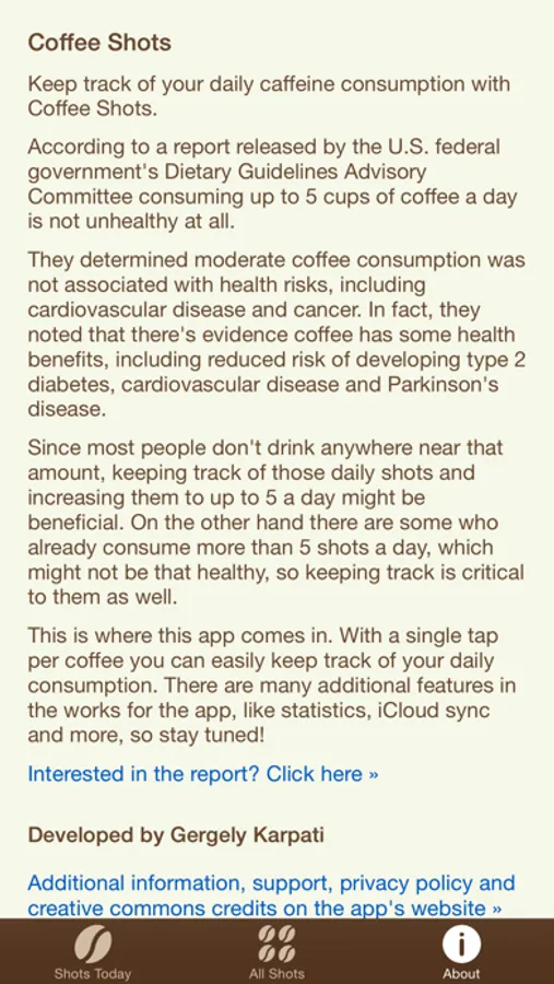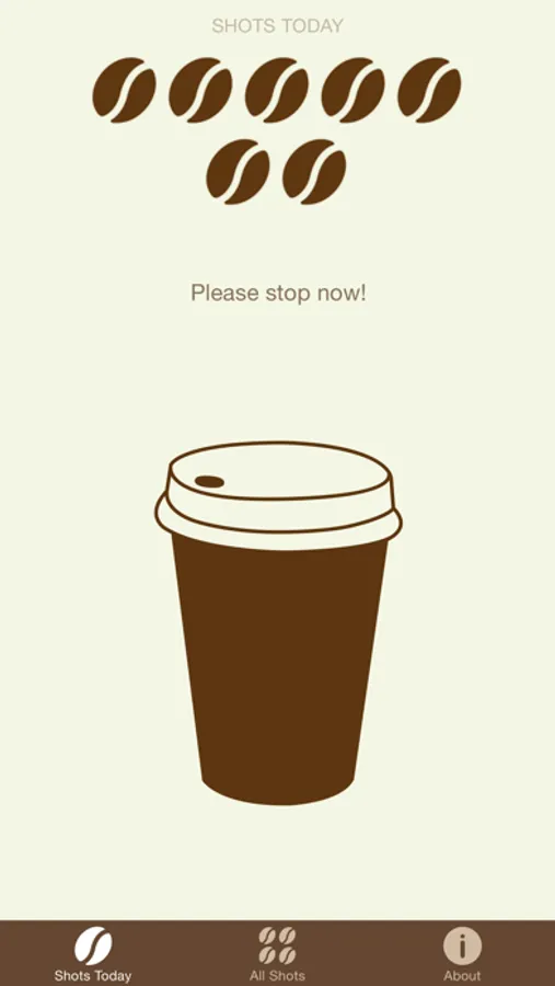 This app makes it easy for you to keep track: a single tap per coffee and you can be sure to drink the right amount of coffee every day.