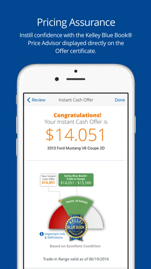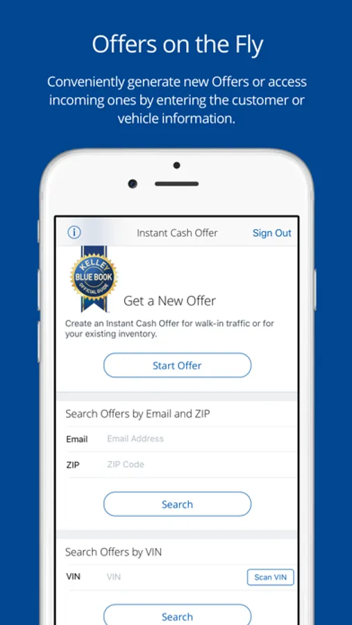 This app allows Participating Dealers to generate new and review existing Kelley Blue Book(SM) Instant Cash Offers. Consumers interested in buying or selling a car should use the Autotrader “Find New & Used Cars For Sale” app.