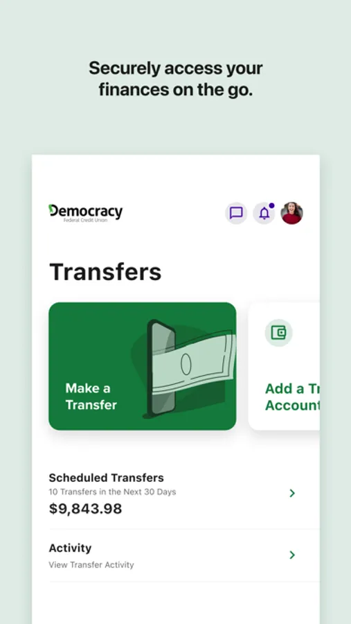 Bank wherever you are with Democracy FCU Mobile! Check balances, make transfers, Pay bills, find locations and deposit checks while you're on the go. For more information, go to democracyfcu.org.