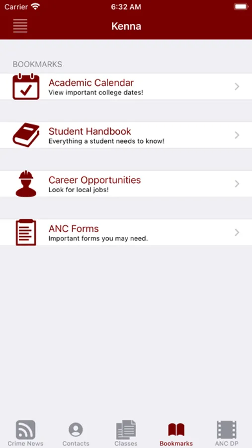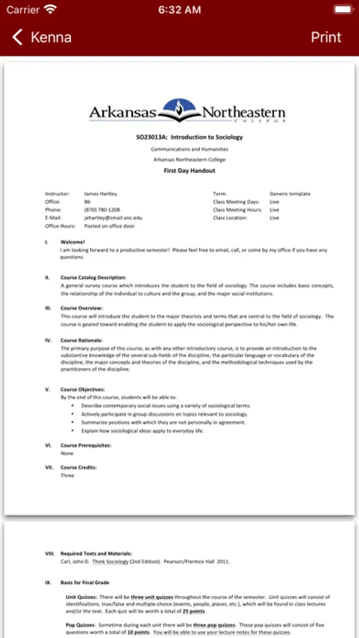 Kenna is a basic informational app that I created for my college students. It is a free application. It helps me stay connected with my students throughout the semester.