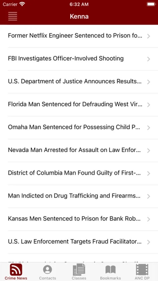 News feed provided by the Department of Justice through their free RSS feed.