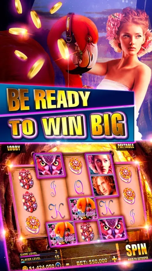 Unlock tons of new slots as you level up. The slots have smooth graphics and clear sounds to make gameplay feel REAL! Level 1 has unique and exciting 3x3 and 6x6 reels. The first slot machine is My Lady’s Castle, featuring 50 pay lines, transferring wilds and 20 free spins. As you play, you can quickly unlock more slots and different games. Games include: Stories of Wonderland, Cat's Grace, Fairy Forest, Panda Country and more!