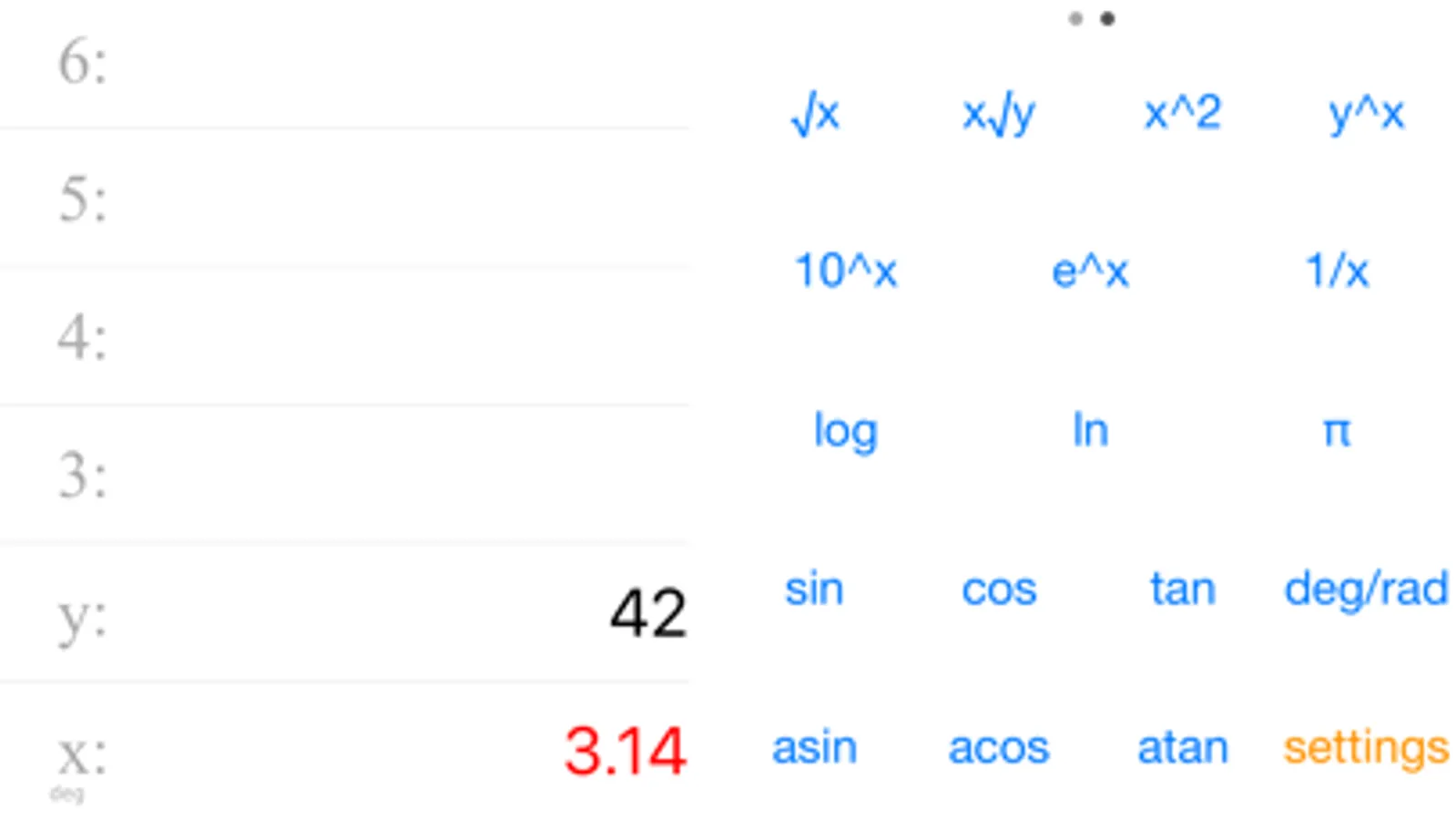 Crunch your numbers with the rpn calculator that fits right along side every other iOS app! Don't get held back by the conventions of traditional, keyboarded calculators that can't update their buttons with new functions without the use of a shift key! Use technology from the future, like swipe gestures to change key layouts or touching and holding a stack item to get a popup granting a range of options.