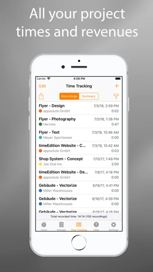 - Add and edit recordings: If you missed a recording: Easily add it manually or adjust the tracking time.