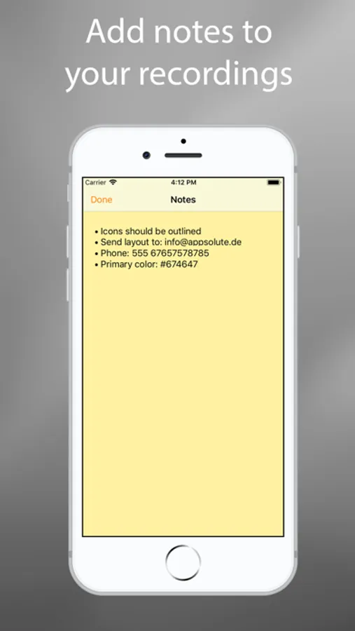 - Notes for all your recordings: At any time you can take a note for any recording that you are doing.