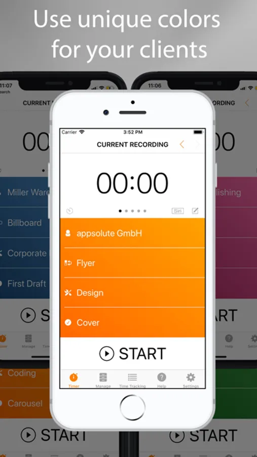 - Color coding: Different colors for your clients lets you see at a glance which client you are currently tracking.