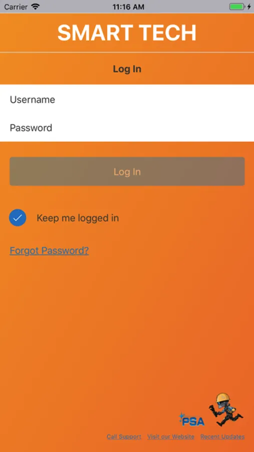 Log in in with your PSA Web username and password. A PSA Web user license is required to log in to this app.