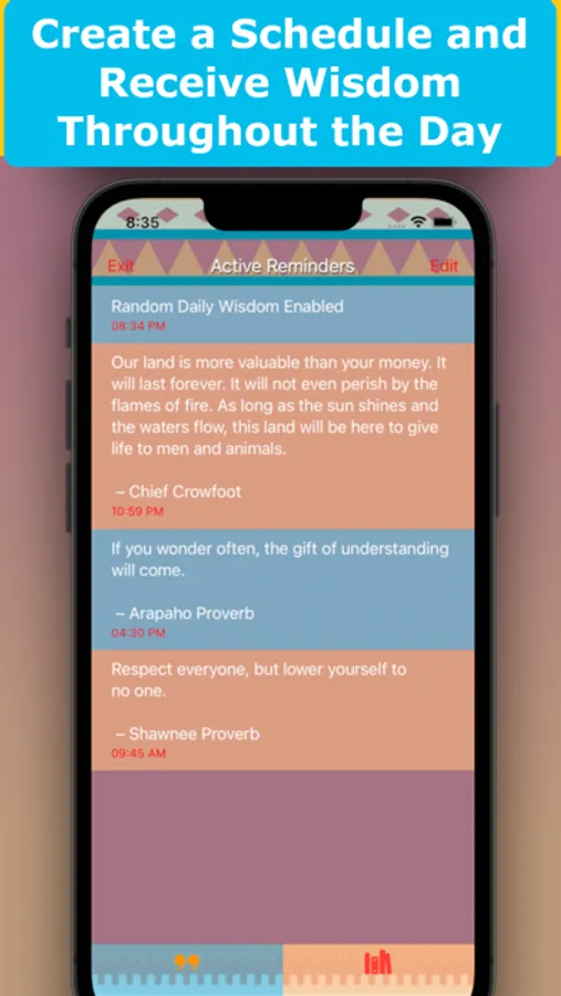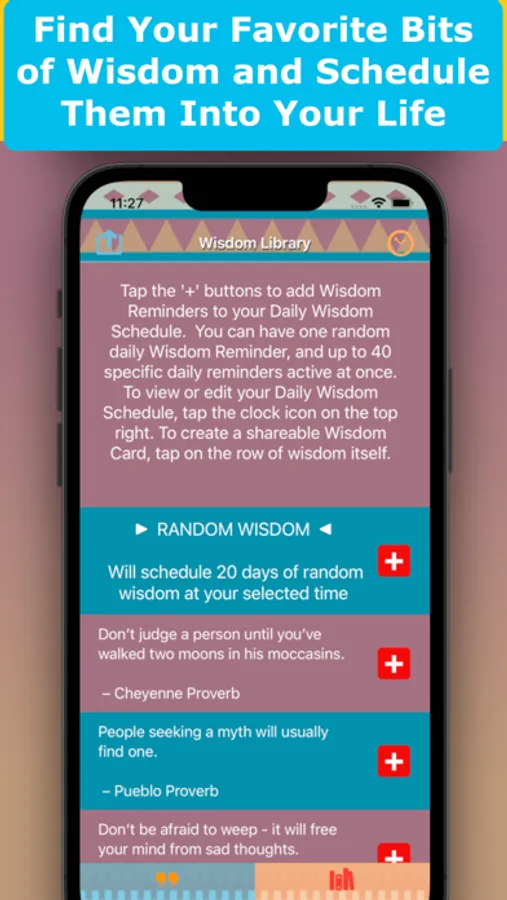 Set the app to alert you with a daily piece of random wisdom to motivate you during your day. If you enjoy particular pieces of wisdom from the Wisdom Library, create a schedule of reminders so you can continually grow from them over a period of time.