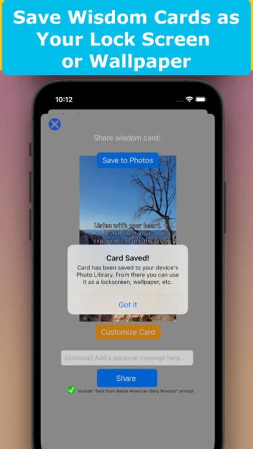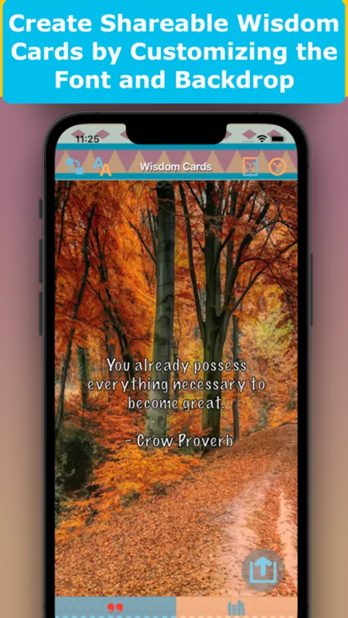 Once you find a piece of wisdom that resonates with you, choose a pre-designed card, or design a custom Wisdom Card of your own, and save it as your Lock Screen or Wallpaper. And don’t forget to share your Wisdom Cards with your friends and family so they can enjoy the benefits of ancient wisdom alongside you.