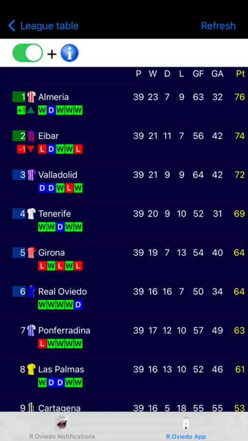 Follow Real Oviedo soccer team (Unofficial application for Real Oviedo). Fixtures, results, statistics, notifications... and much more!
